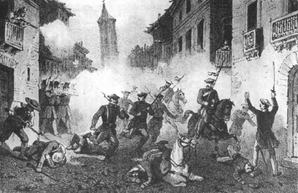 Cincomarzada, fallido ataque carlista a Zaragoza el 5 de marzo de 1838. Los carlistas perseguidos por los soldados cristinos y la población civil.