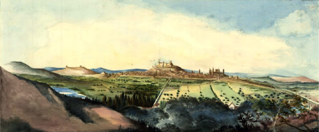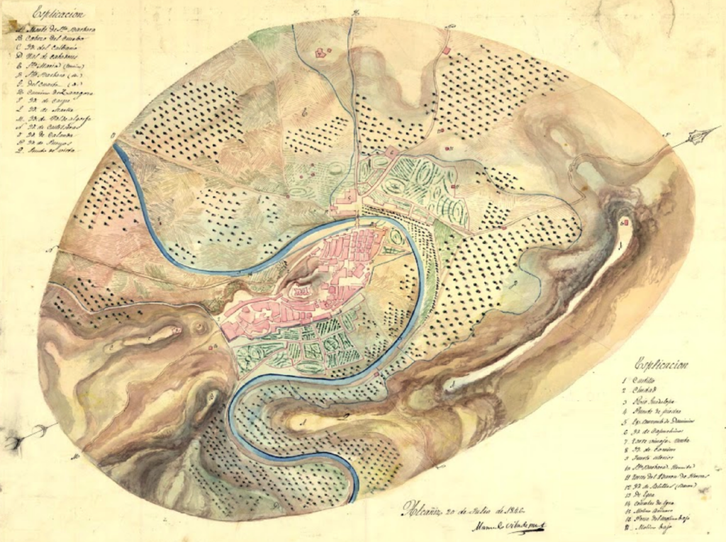 Vista de Alcañiz y sus alrededores en el siglo XIX. Fuente Biblioteca Virtual de Defensa.