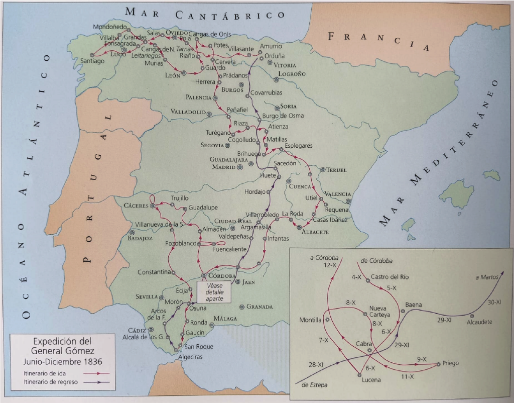 Expedición de Gómez en 1836 durante la Primera Guerra Carlista. Itinerario seguido.