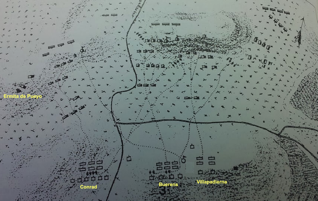 - Columna derecha al mando de Joseph Conrad, jefe de la División Auxiliar Francesa, con dos BIs y 2 ECs, 6 piezas de su división y el BIL-1/6 español, 2 ECs de lanceros polacos.