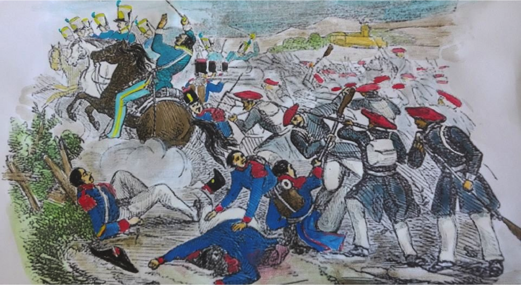Por su parte, Iribarren, viendo la muerte de su compañero, ordenó el ataque general, pues “solo pensó en vengar la pérdida”. Él mismo se puso al frente de otro escuadrón de caballería, dirigiendo otra carga. Esto privó al ejército cristino del mando y control, es decir, de la coordinación adecuada y de recibir órdenes precisas en el caos de la batalla.