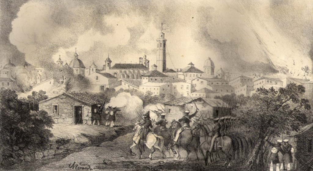 Espartero asentó su artillería junto al atrio de la iglesia parroquial, el punto más elevado de la villa. Desde allí hostigó a los carlistas que intentaban cruzar al otro lado del río Tajuña por el puente de la localidad.