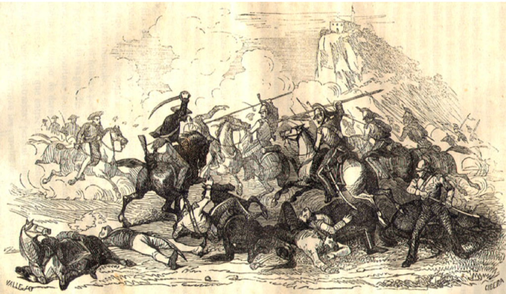 La caballería cristina, liderada por el brigadier Amor, jefe de la caballería, que realizó una carga con escuadrones del RC-1 del Rey, del RC-2 de la Reina y RCL-6 Cataluña (Calatrava), demostró un valor excepcional en la acción.
