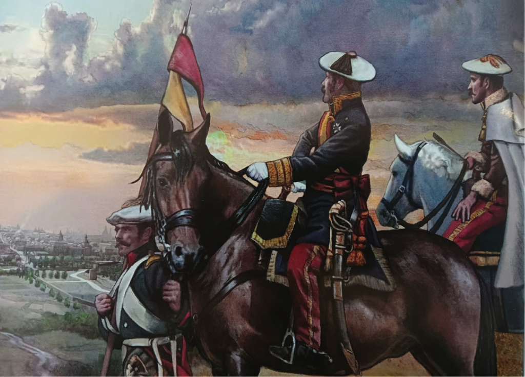 - BRC de Diego de León con 7 ECs: 2 EC de granaderos, 2 ECCs y 1 EC de cazadores de la Guardia Real; 2 ECs del RC-5 Borbón.