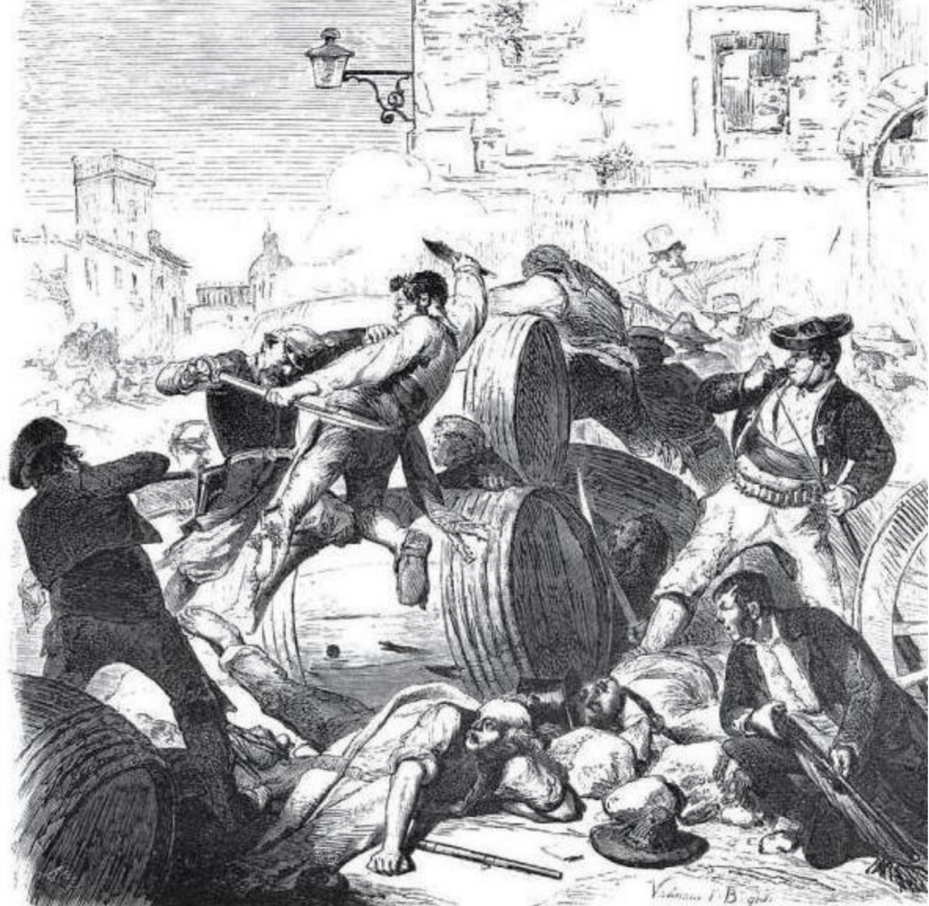 El 4 de abril de 1870, el ejército llamó a “quintas” en todos los municipios de Barcelona. En aquella época, el reclutamiento se hacía de pueblo en pueblo y era el ejército quien hacía la labor. En Gracia, cuando supieron que los militares habían salido de Barcelona y se dirigían a “quintar” a los jóvenes de la villa. Un grupo de mujeres asaltó el Ayuntamiento de Gracia y quemó documentación y parte del mobiliario, con la intención de evitar que sus hijos fueran llamados a filas, mientras que en las puertas de Gracia se organizó la defensa popular para impedir el paso a los militares.