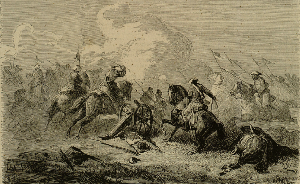 Acción de Oristá (12 de junio de 1873). La caballería carlista capturando un cañón. Autor Ricardo Balaca.