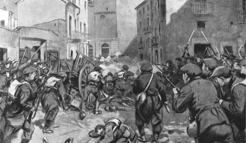 Asalto carlista de Igualada (17 y 18 de julio de 1873). Entrada de los carlistas en la ciudad.