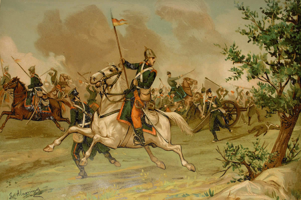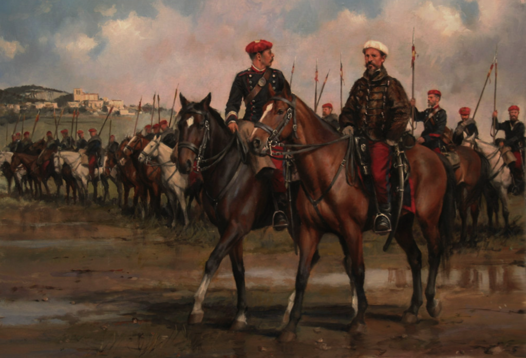 En ese instante, y desde la última posición de retaguardia, el marqués de Valde-Espina, sin pedir autorización o recibir orden alguna, se colocó al frente de 50 jinetes que conforman el primer escuadrón navarro y la escolta del general Dorregaray, y ordenó cargar sobre el centro-izquierda de la línea republicana, en concreto sobre la sección de artillería y el batallón de Barbastro que la cubría.