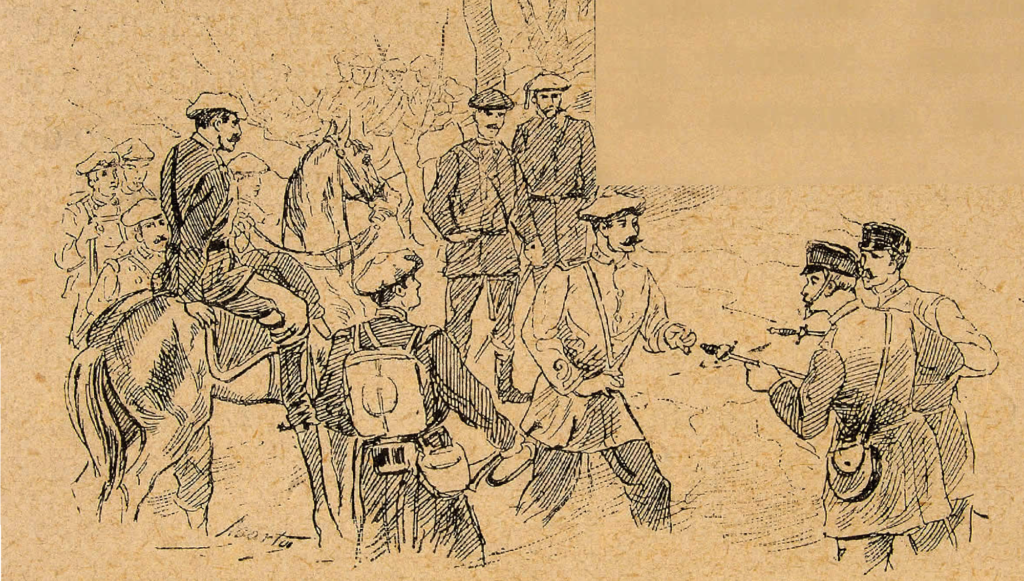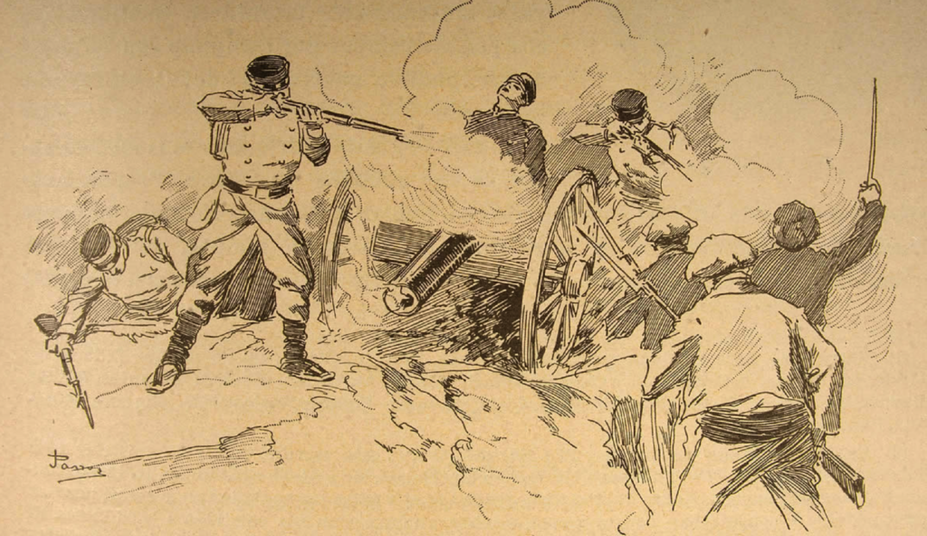 En ese momento, y a pesar de no habérsele ordenado, la sección de artillería, que se encontraba junto al flanco izquierdo liberal, desmontó las dos piezas Krupp y comenzó a bombardear las masas enemigas con metralla, protegida por la caballería republicana.