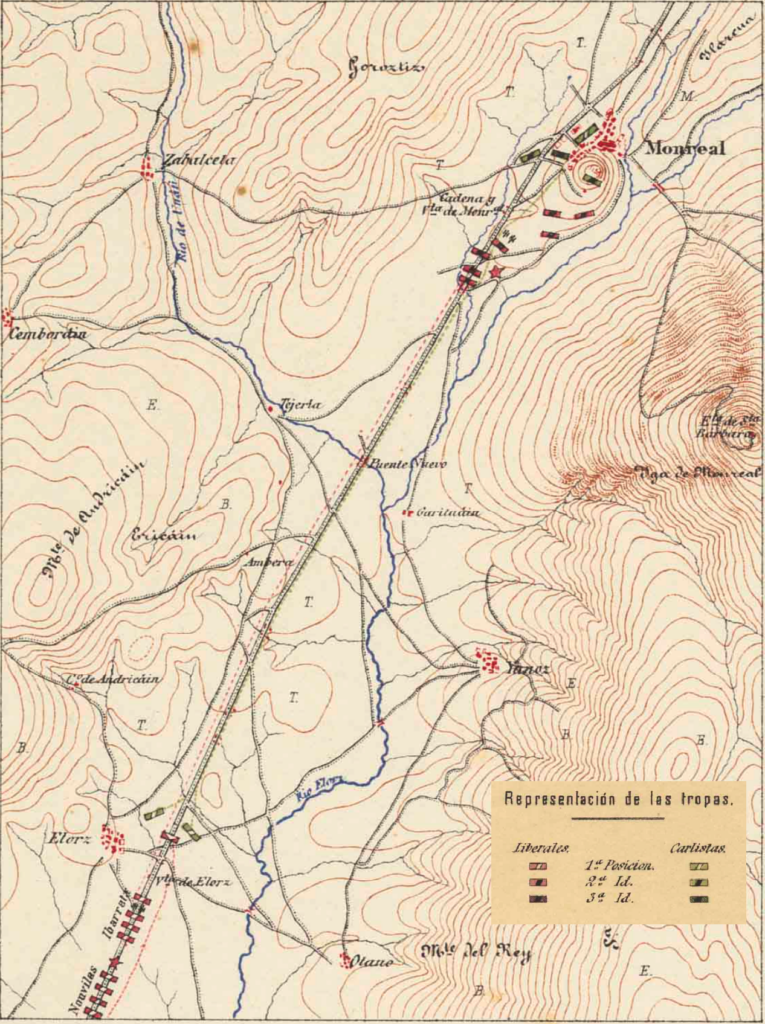 Los hombres estaban agotados y desmoralizados. Numerosos efectivos se habían disgregado del grueso de la columna en los últimos días. Algunos habían caído prisioneros, otros muchos habían quedado por el camino, rotos de agotamiento. Había secciones enteras que desertaban en pleno. Cuarenta guipuzcoanos habían abandonado el batallón de Lizárraga la noche anterior. Se corría un serio riesgo de que las fuerzas carlistas se disolvieran si no se entraba en combate. Sin embargo, no tenían ni armas ni munición para sostenerse ante el ataque de tres columnas que totalizarían cerca de 6 batallones de infantería, más artillería y caballería.