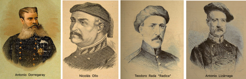 Después de los incidentes que se habían provocado por la manera peculiar de guerrillear del cura Santa Cruz, el general Lizárraga le hizo indicaciones de que procurara operar con subordinación a su mando y utilizando los procedimientos de guerra que no fuesen los que tenía costumbre el cura guerrillero. Esto provocó discusiones entre Lizárraga queriendo imponer su autoridad, y Santa Cruz siguiendo en la indisciplina. El ministro de la Guerra general Elío intervino cerca de Lizárraga para que transigiera con Santa Cruz, mientras que Dorronsoro hacía una gestión parecida a fin de que Santa Cruz se sometiera a Lizárraga.