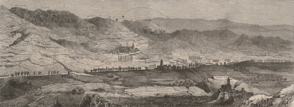 Dicho sea en honor de la verdad, la retirada del ejército republicano fue muy ordenada y por escalones, haciendo un fuego vivo y muy sostenido de fusilería y cañón. Se veían las líneas de fuego ir poco a poco ganando terreno a retaguardia, hacer alto la artillería, disparar unos cuantos cañonazos, cesar el fuego y repetirse la misma operación táctica con singular serenidad, como en un simulacro, protegiendo la numerosa caballería liberal en la carretera la retirada de sus tropas. Verdad es también que el ejército carlista no estaba en condiciones de perseguirlas de cerca y activamente por la clase de terreno en que se operaba, y sobre todo por lo distantes que se encontraban ya las fuerzas unas de otras.