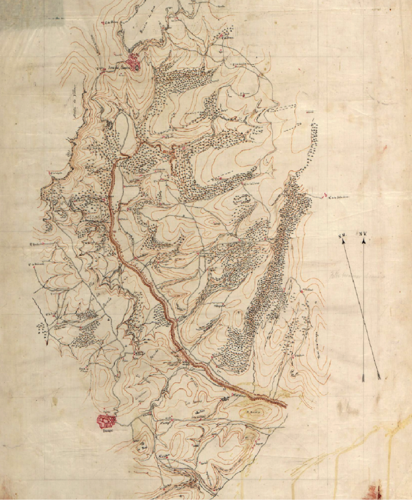 En la masía se iban reuniendo los heridos y los prisioneros, y por estos supe que el cabecilla Cucala, con 3.000 hombres, había sido el defensor de las posiciones de la derecha, y que habían sostenido el combate en la izquierda las acciones de Vallés y Segarra, con 4.000 hombres, mientras que Vizcaíno, con 4.500, guardaba las alturas que dominan el camino entre Montalbano y Arés (cifras, por supuesto, muy exageradas).