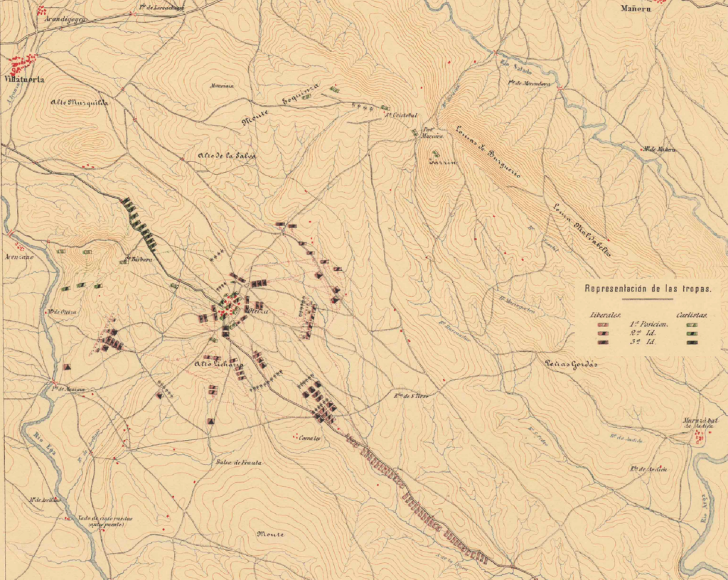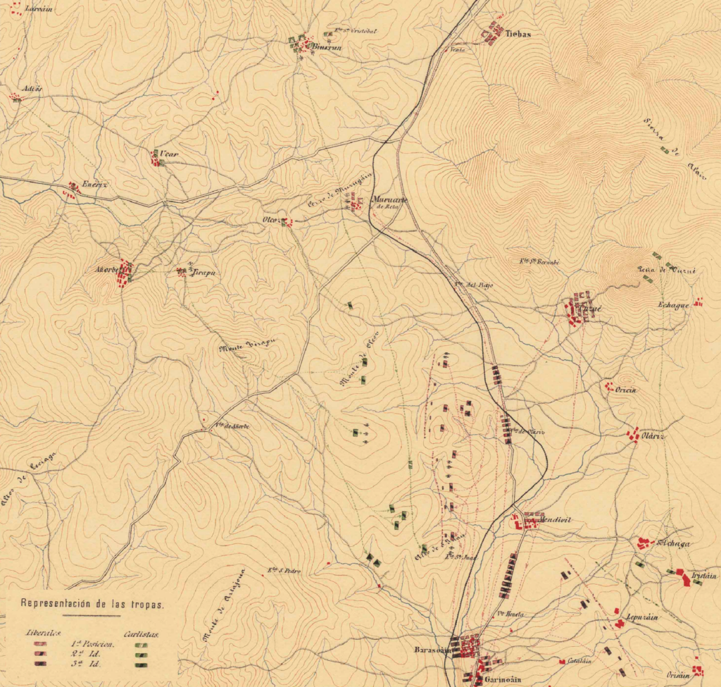 Dos batallones de infantería con unos cuantos caballos se establecieron en posición para impedir todo el ataque carlista por esa banda.