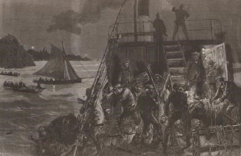 El diario británico The Times del 15 de octubre dice que 6 cañones, 3.000 fusiles y 500.000 cartuchos fueron desembarcados por los carlistas en el cabo de Higuer: