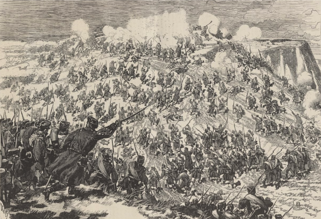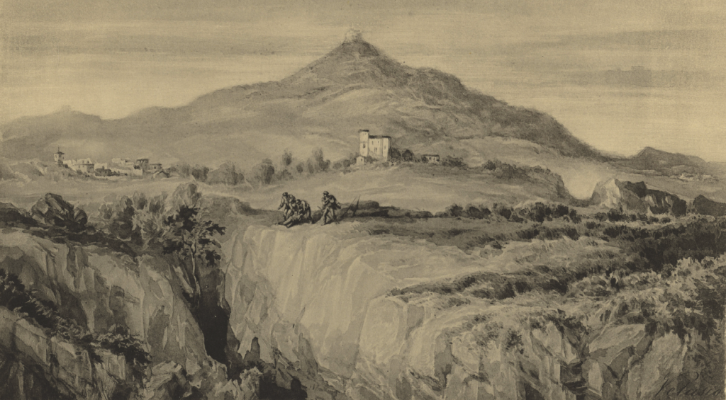 Segunda Batalla de Montejurra (17 y 18 de febrero de 1876). Toma del reducto carlista de Montejurra por las brigadas de Cortijo y Moreno el día 18. Autor M. Vierge.