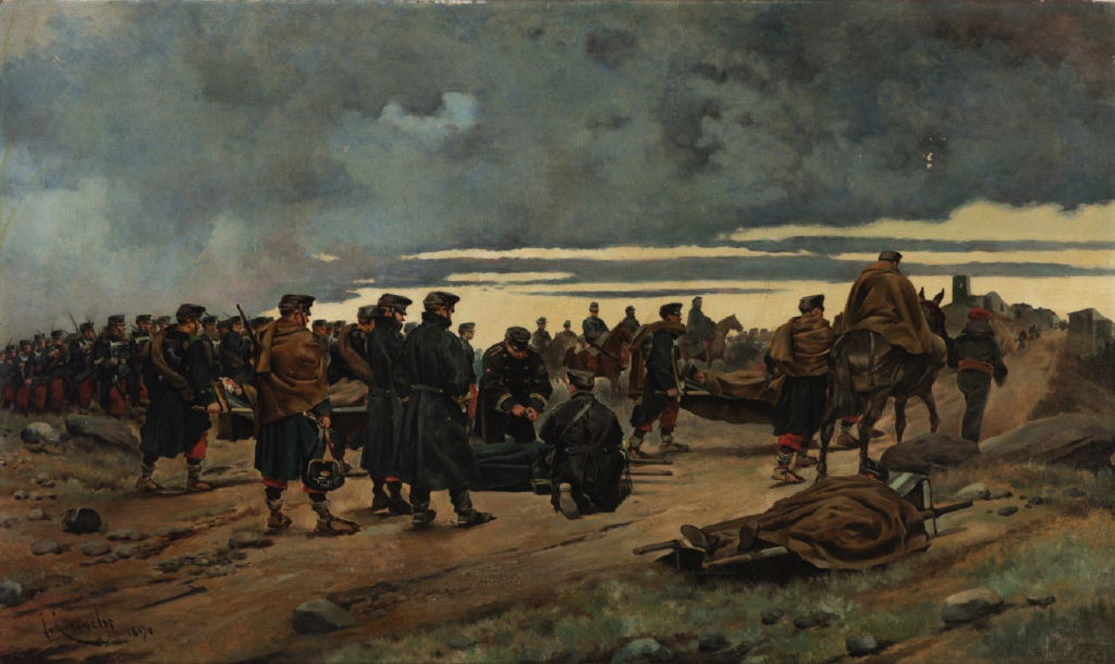 Tercera Guerra Carlista. Traslado de heridos en el ejército liberal. Autor José Cusachs y Cusachs.