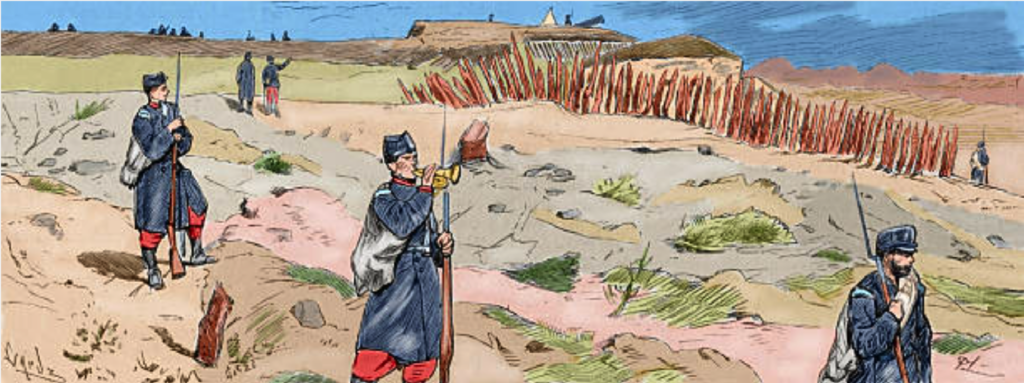 Dispuestas así las cosas, preparados los cartuchos de dinamita (un centenar próximamente) y encerrados en un saco de lona, dispuso Carnevali que dos artilleros le acompañaran para conducirlos. Al preguntar en las baterías si había dos que quisieran prestar voluntariamente tan arriesgado servicio, dieron un paso al frente todos los artilleros, por lo que, para que ninguno pudiera quejarse, se sorteó a los dos valientes que habían de acompañar al bravo Carnevali. Tenían que atravesar más de 200 metros al descubierto; era casi seguro el peligro de muerte que arrostraban si eran vistos desde la muralla.