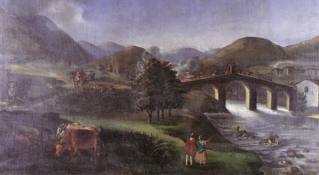 Día 27 de abril: Continúa el diario del mariscal Aymerich: “Hoy 27 solo se ha notado andan por la cuchilla que viene del campo para la cañada, en que está la gran guardia de ellos, cuatro personas que por sus trajes decentes se demuestra ser de la oficialidad. Se paraban de distancia en distancia, mirando hacia el río con demostración de estarlo reconociendo y se advierte formación en el campo contrario de que inferimos estén en revista de armas. Se vuelve a notar la desmembración de hombres en el campo de los traidores; pero hasta ahora que son las 12 de la noche no hay novedad por el Tablón como lo denota el parte que se acaba de recibir del capitán Nicolás Chávez. Esto no deja de causarnos novedad por haberse visto dirigirse más de 60 hombres de los Nariñistas por aquel lado y no saber el destino de los demás que faltan en su campo”.