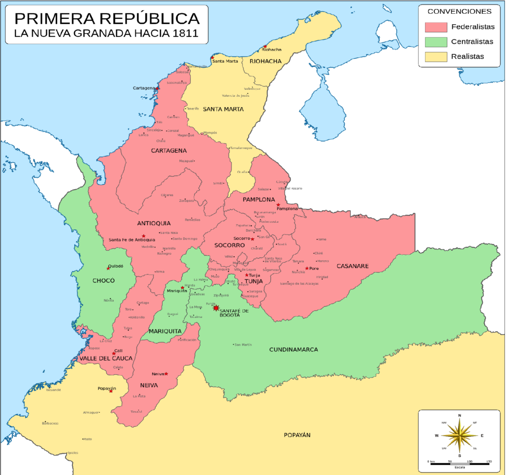 El 27 de noviembre de 1811 se creó la Federación de las Provincias Unidas de la Nueva Granada, participando en el acto fundacional las provincias de Antioquia, Cartagena, Pamplona, Neiva y Tunja. Debido al carácter centralista de la constitución de Cundinamarca (nombre que recibió la provincia de Santa Fe de Bogotá), los federalistas eran recelosos de la unión de este Estado a la Federación. Este recelo generó una división entre dos bandos: los centralistas (patiadores), liderados por Antonio Nariño y que controlaban el gobierno de Cundinamarca, y los federalistas (carracos), liderados desde Tunja por Camilo Torres en calidad de presidente del Congreso de las Provincias Unidas.