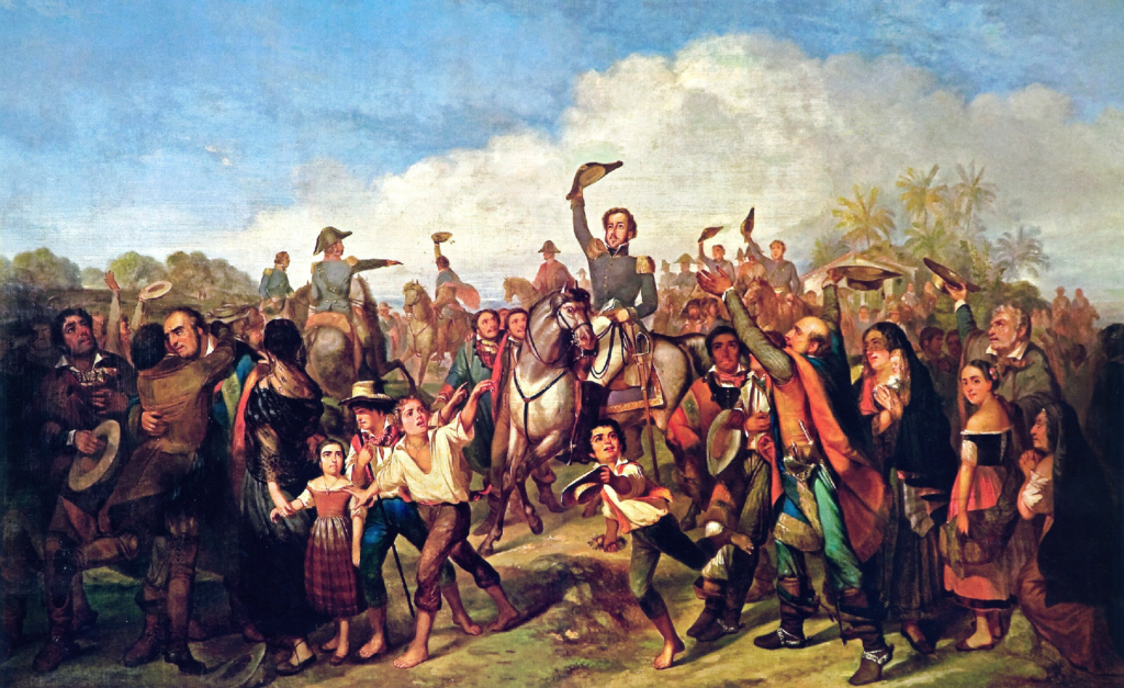 El príncipe Pedro rodeado por una multitud en São Paulo tras dar la noticia de la independencia de Brasil, el 7 de septiembre de 1822. Autor François-René Moreaux.