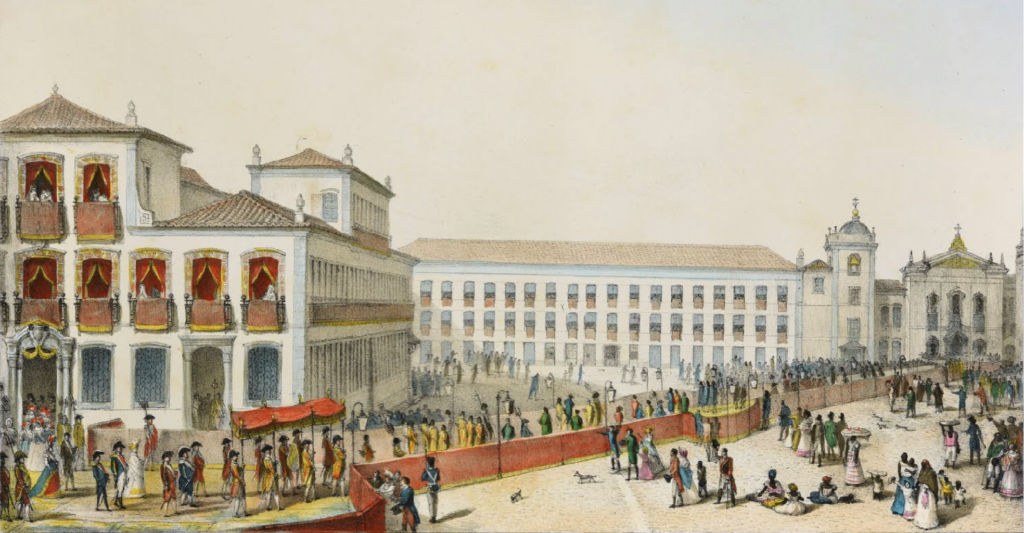 La población de Río de Janeiro, que, en 1808, era de apenas 60.000 habitantes, pasó a 112.695 en 1821, incluyendo la zona rural, entonces repleta de granjas y casas de campo habitadas por nobles y extranjeros. El número de esclavos se triplicó. La nobleza de la capital se exhibía en los conciertos, en las misas de la Capilla Real, en las ceremonias del besamanos en el Palacio da Quinta da Boa Vista y en los salones frecuentados por el cuerpo diplomático, por los oficiales y comerciantes extranjeros y por la nueva corte creada por don Juan después de su llegada a Brasil; constituida por barones del azúcar, vizcondes del café, marqueses de la ganadería, condes de las minas de oro y diamantes y gentilhombres del tráfico de esclavos, entonces todavía el gran negocio brasileño.