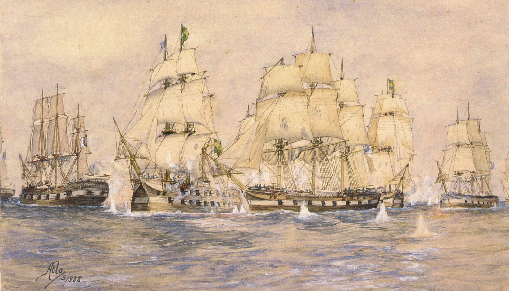 El 4 de mayo, se avistaron las dos escuadras. La de Cochrane estaba formada por los navíos Pedro I (74), las fragatas Ipiranga (50) y Niteroi (38); las corbetas María da Gloria (26) y Liberal (20); el bergantín Guaraní (14) y la goleta Real (10).