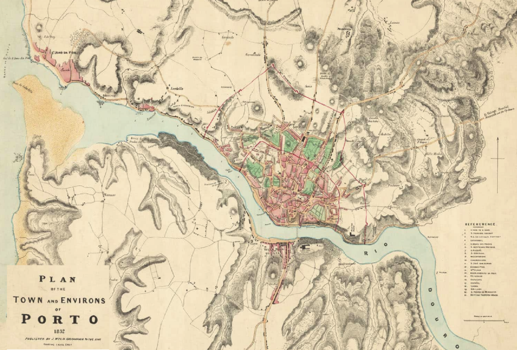 Asedio de Oporto (1832). Plano de la ciudad y alrededores.