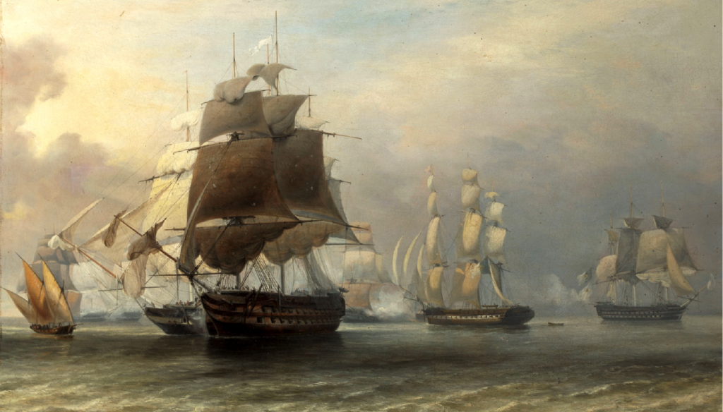 Batalla naval Cabo de San Vicente (5 de junio de 1833).Vista de la batalla. Autor Antoine Léon Morel-Fatio.