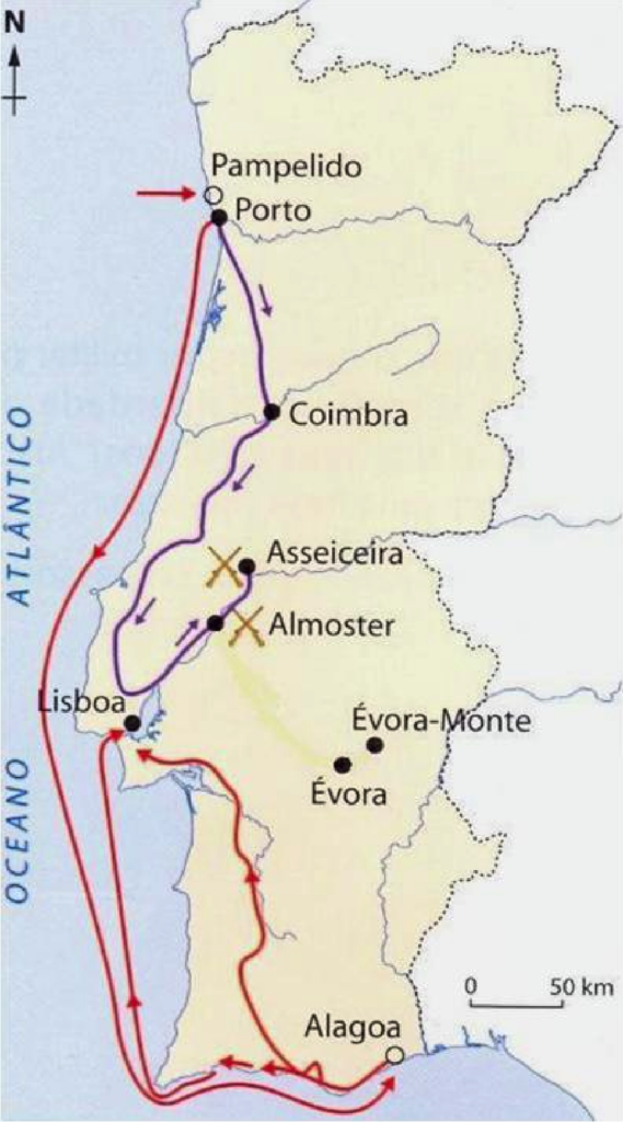Guerra Civil Portuguesa. Movimientos de fuerzas.