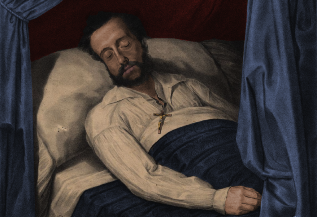 Pedro I de Brasil y IV de Portugal en su lecho de muerte en el Palacio Real de Queluz. Falleció el 24 de septiembre de 1834 septiembre de 1834.