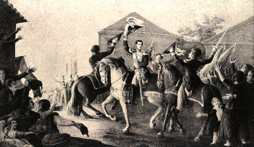 Revuelta de Vilafrancada (27 de mayo de 1823). El infante don Miguel al frente de un regimiento de infantería.