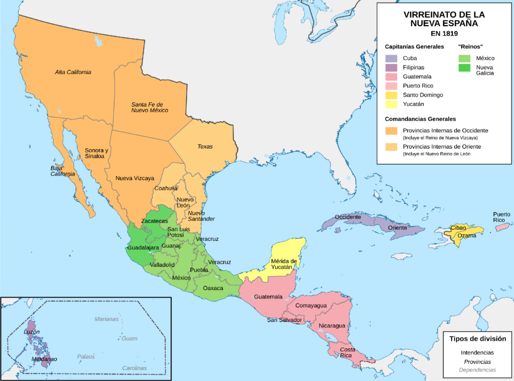 Mapa del virreinato de Nueva España después del Tratado de Adams-Onís de 1819.