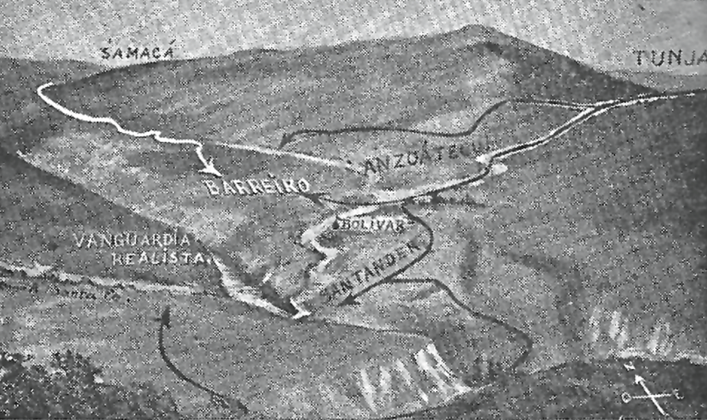 Desde el alto de San Lázaro en Tunja, Bolívar y el estado mayor observaron los movimientos del ejército realista. A las 10 de la mañana ordenaron impedir el paso por el puente de Boyacá, en el cual confluyen los dos caminos: el de Samacá, utilizado por los realistas desde Motavita y el Camino Real, utilizado por los independentistas.