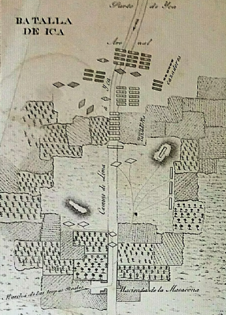 Los realistas ocuparon Ica al amanecer. El escuadrón de lanceros del Perú, que venía en apoyo de Tristán desde Chincha, fue cortado la madrugada del día 8 por el ED del Perú, al mando del teniente coronel Dionisio Marcilla, que le ocasionó 50 muertos y le toma 80 prisioneros.