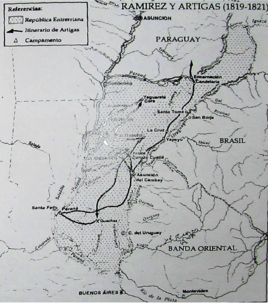 Con sus escasas fuerzas, a las que unió partidas de indígenas guaraníes y milicianos correntinos, José Artigas ocupaba el sur de la provincia de Corrientes. Allí se seguía considerando el Protector de los Pueblos Libres, es decir, el superior de Francisco Ramírez, gobernador de la provincia Entre Ríos. Este, en cambio, consideraba a Artigas solo como un aliado. En parte, esto era así porque se había encumbrado por sus propios medios. Y, en parte, porque Artigas no estaba en condiciones de proteger a nadie, ni siquiera su propia provincia, entonces bajo control portugués.