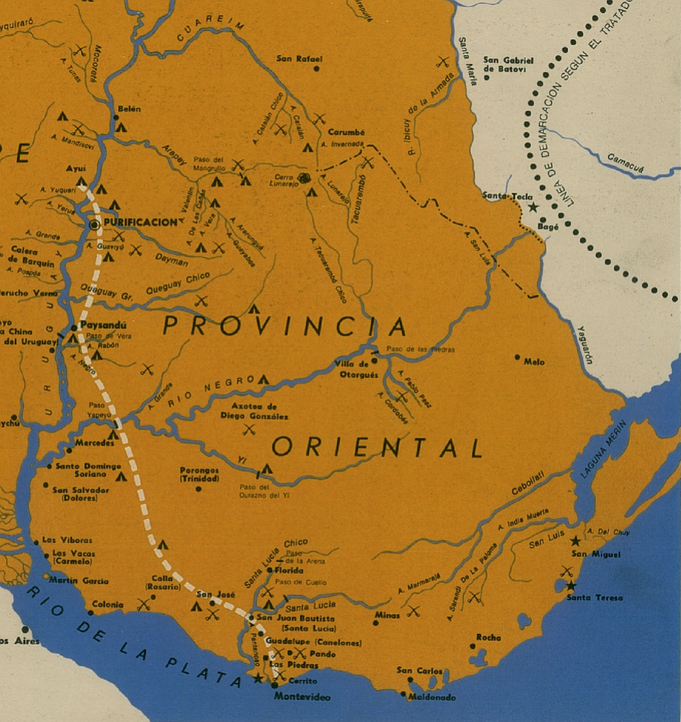 El 9 de junio de 1811, el alcalde de Mandisoví, Pablo Areguatí, comunicó a Belgrano que desde San Borja había partido “un gran ejército de entre 4.000 y 5.000 hombres, por la cuchilla Grande hacia Montevideo”. Se trataba del Ejército Pacificador de la Banda Oriental.
