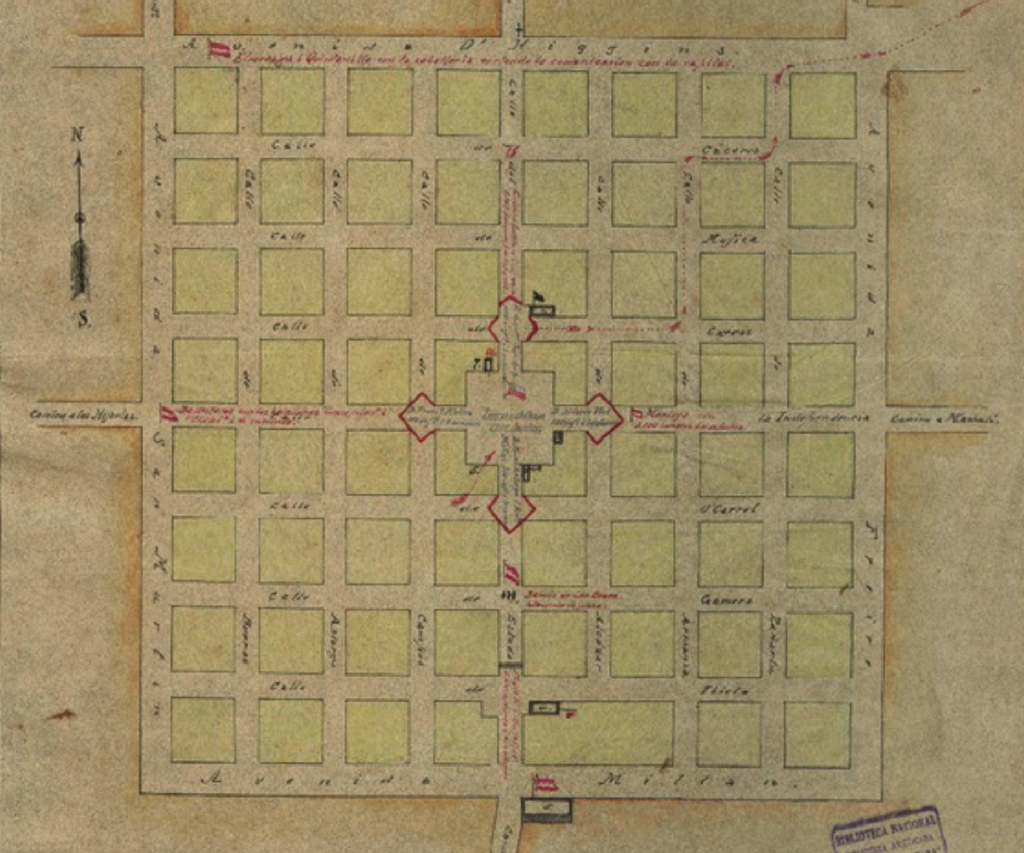 - La columna sur, al mando del coronel Maroto con la DI-3 (BI de Talavera, RI Real de Lima), atacaría la calle de San Francisco.