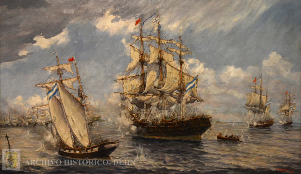 A las 14:00 horas, la Hércules y la Belfast consiguieron aproximarse a la retaguardia realista, pero esperaron al resto de la línea que se incorporara una hora después, momento en que cesó el viento, pasando ambas flotas a impulsarse con los botes y lanchas. Brown decidió entonces prescindir de sus barcos más lentos, Agreeable y Nancy, y continuar la persecución con los restantes, mientras pasaba su insignia a la pequeña pero veloz Itatí. Mientras se lanzaba para cortar a un bergantín realista, al disparar sus cañones sufrió la fractura de una pierna, por lo que regresó a la Hércules y sentado en la toldilla, continuó dirigiendo la lucha. Después de las 17:00 horas, se levantó viento del ESE y la escuadrilla insurgente se lanzó a la caza de la realista. A las 22:00 la Hércules alcanzó la retaguardia y pasando entre la Neptuno y el San José, descargó andanadas por ambas bandas. El San José intentó escapar, pero varó y se rindió a la Hércules que se detuvo para marinarlo. La Belfast continuó tras el Neptuno y lo rindió, mientras la corbeta Paloma se rendía ante el Céfiro.