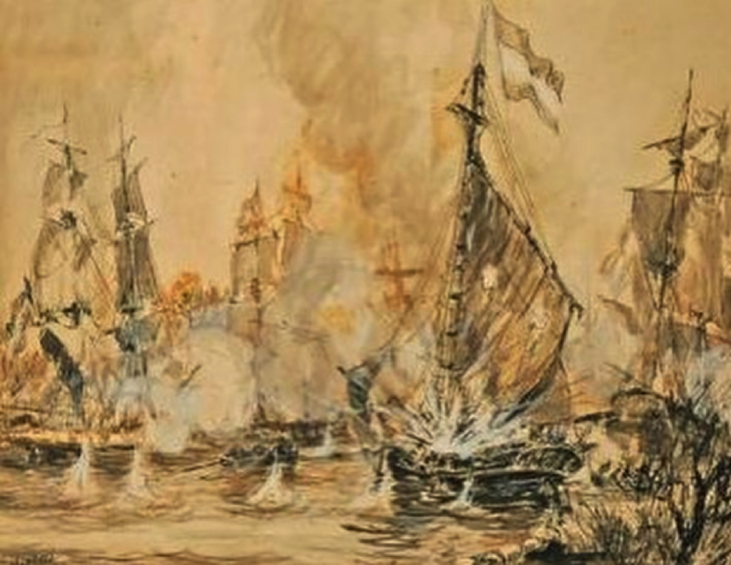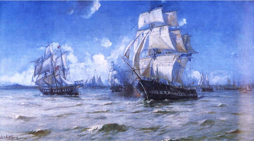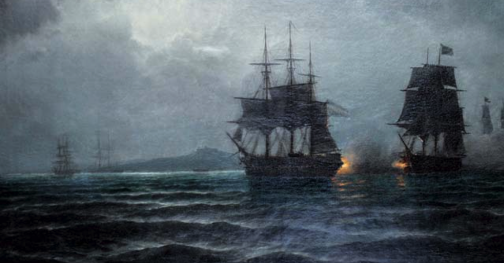 Asegurado el desembarco, Brown llevó la escuadrilla en dirección a los buques españoles para simular un ataque como distracción del esfuerzo principal.