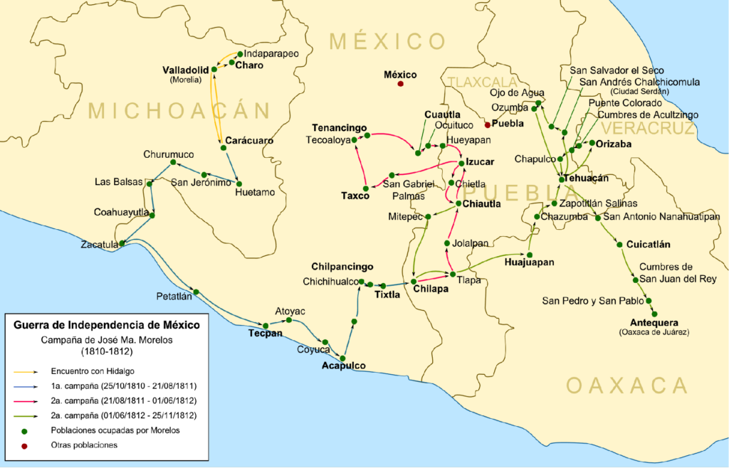 Morelos aceptó esta orden, por lo que el 25 de octubre de 1810 inició su primera campaña militar en los poblados de Tierra Caliente, que conocía a la perfección por haberlos recorrido innumerables veces durante su juventud, cuando se dedicaba a la arriería.