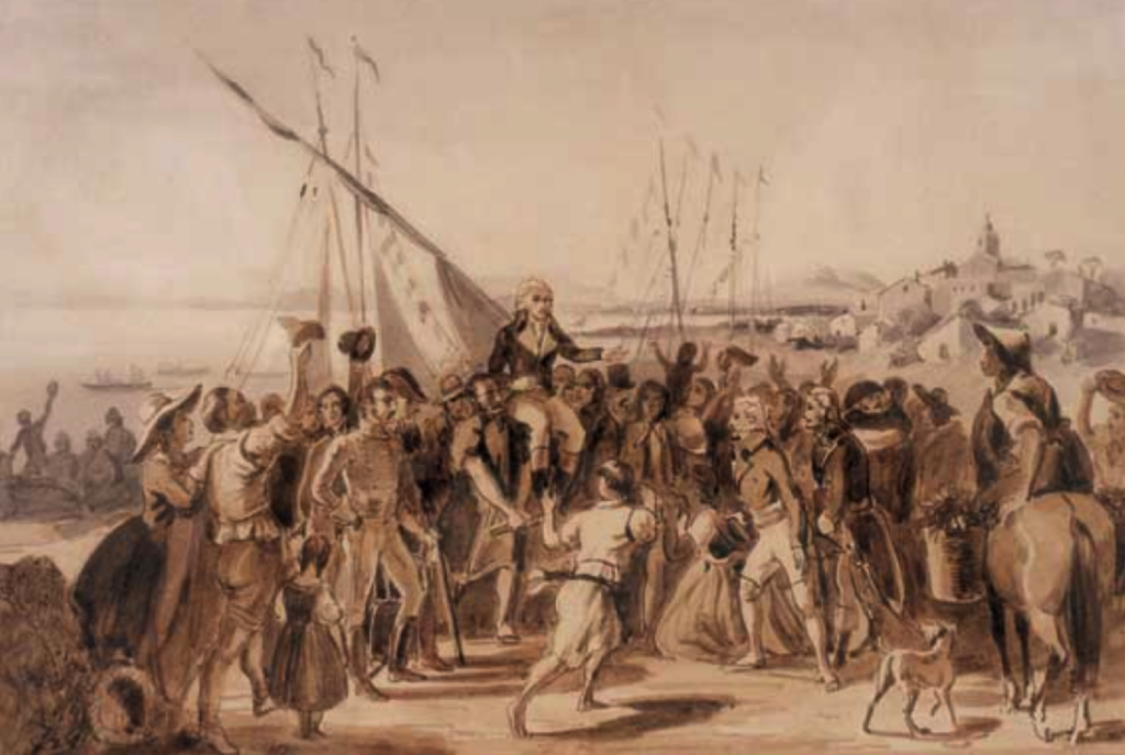 El 11 de diciembre, Miranda desembarcó en el puerto de La Guaira. Como formalmente la Junta Suprema de Caracas aún actuaba en nombre de la Corona española, solicitó de ella el permiso correspondiente para hacer su ingreso en la ciudad. La delegación de la Junta Suprema, que incluía a Bolívar, y una multitud de lugareños, dieron una entusiasta bienvenida a Miranda en La Guaira.