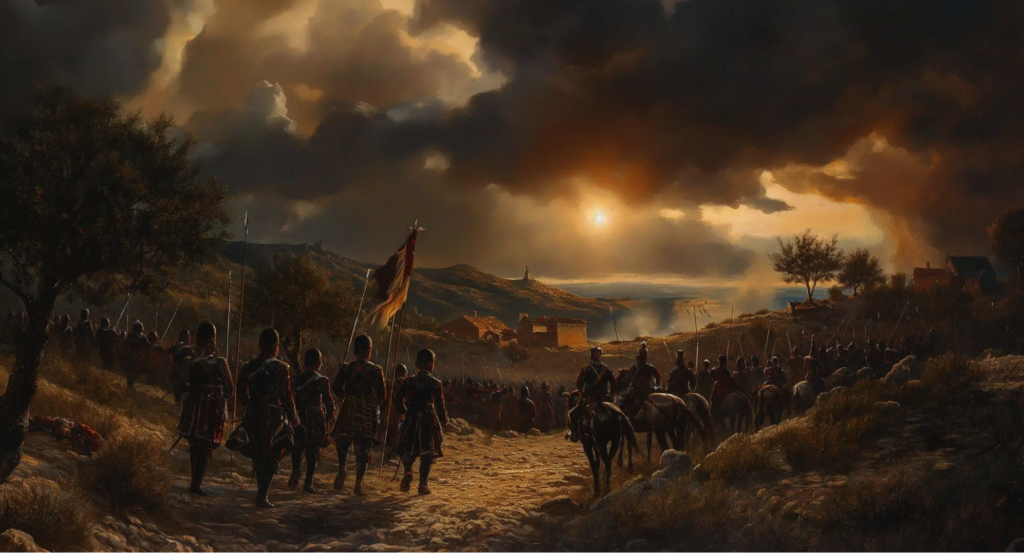 - Un regimiento de la Guardia Real Española, organizado en Vitoria después del 15 de abril por la Junta Provisional de Gobierno, siguió al cuartel general.