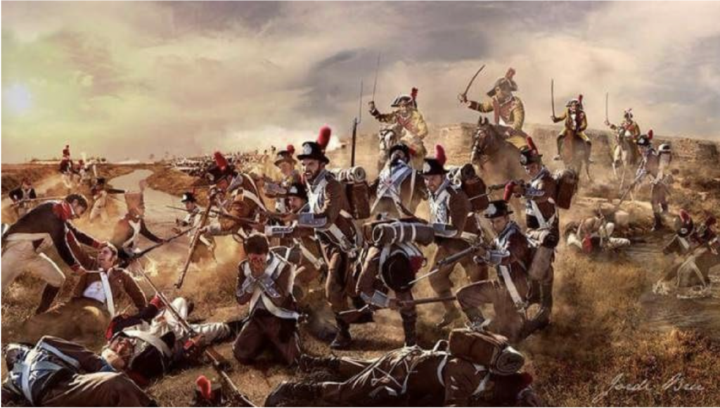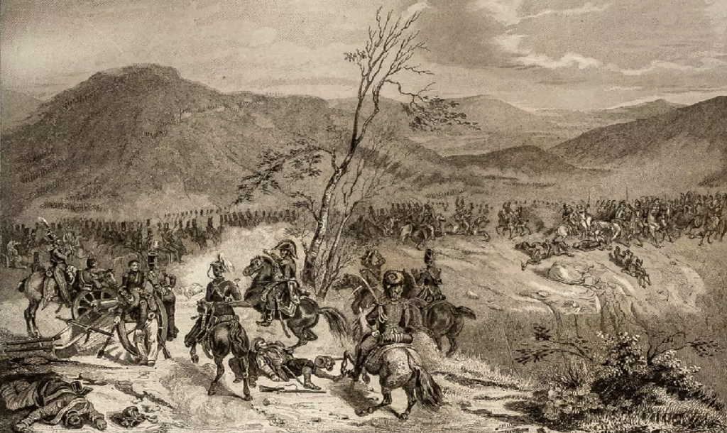El general Roche-Jaquelein, observando atentamente el campo de batalla, esperaba a que el RIL-7 estuviera disponible para desplazarlo al flanco derecho del enemigo, cuando este, probablemente impaciente por su inacción, rompió el orden de batalla y formó columnas para atacar a nuestra caballería. El general francés, al ver esta maniobra, que hizo que el enemigo perdiera su superioridad en la extensión de la línea, no dudó en ordenarles que cargaran de inmediato.