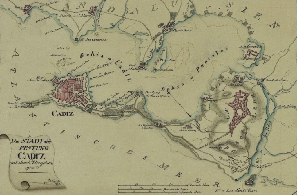 El 24 de junio, llegó a este lugar la fuerza expedicionaria andaluza, y, de no haber sido por la debilidad numérica de las tropas que entonces contaban con el general Bordesoulle, hubiera podido tomar la ciudad (solo disponía de 5.200 infantes, 1.200 jinetes y una batería a caballo), insuficientes para formar un bloqueo. Los constitucionales disponían de numerosa artillería y 25.000 efectivos en Cádiz y la Isla de León.