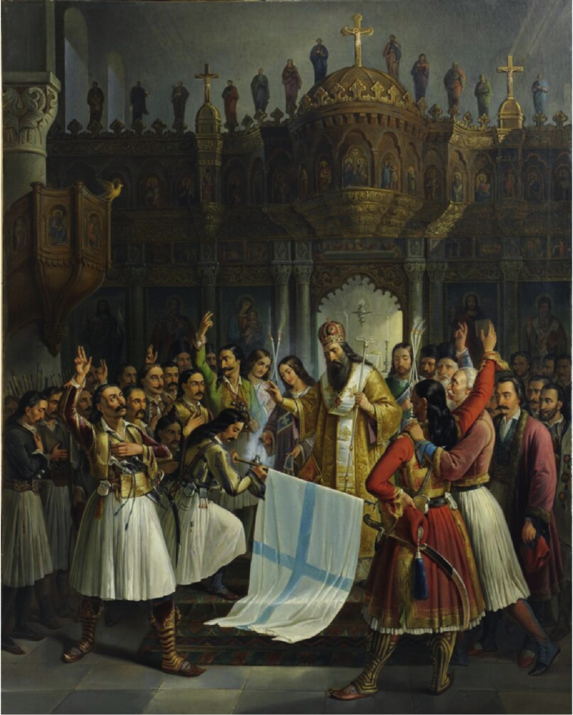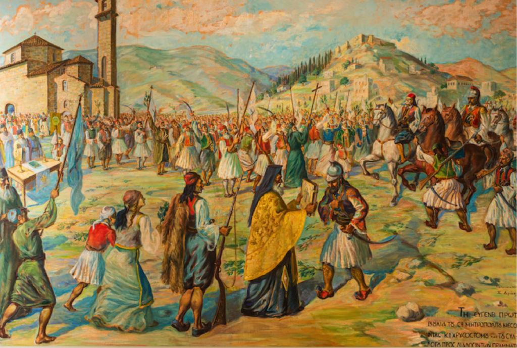 Se reunieron, por el contrario, en el monasterio de Agia Lavra en el actual municipio de Kalávrita, en el que el obispo Germanos el 25 de marzo de 1821 alzó el estandarte de la cruz como señal de rebelión. Los que sí habían acudido a la llamada de las autoridades quedaron cautivos. En realidad, el alzamiento no fue consecuencia de un plan bien trazado, sino que se precipitó por el temor a las medidas de prevención otomanas y al miedo de algunos notables, con lazos con la Filikí Etería (Sociedad de la Amistad), de la actuación de las autoridades.