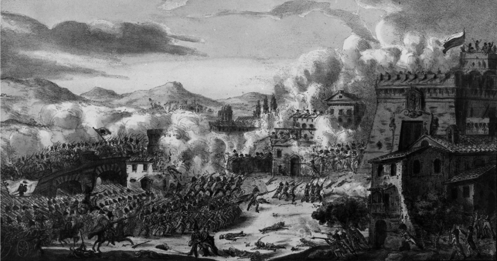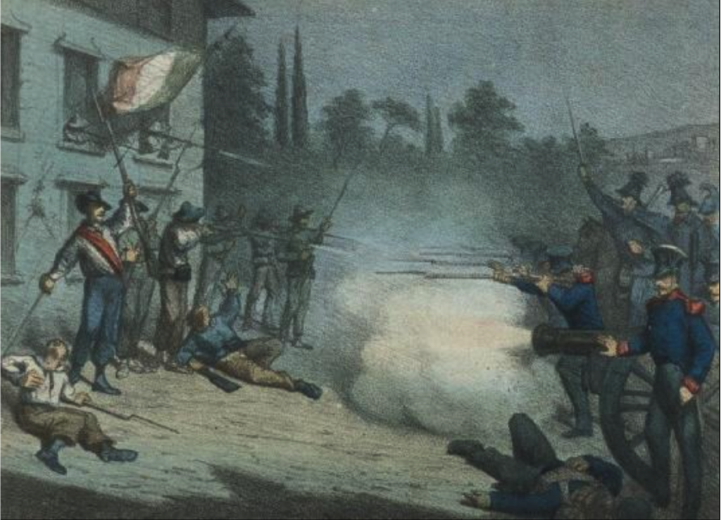 Batalla de Le Celle o batalla de Rímini (25 de marzo de 1831). Autor Mauro Cesare Trebbi, Faenza, Museo del Risorgimento e dell’Età Contemporanea.