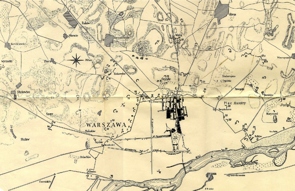 Varsovia había crecido rápidamente a finales del siglo XVIII y principios del XIX. Dado que Polonia atravesaba un período de agitación y constantes guerras devastadoras, carecía de fortificaciones modernas permanentes. Para compensar esto, se construyeron tres líneas de murallas de tierra, bastiones y empalizadas a ambas orillas del Vístula. Las murallas de tierra, de varios metros de altura y construidas principalmente de arena y arcilla, se reforzaron con gaviones y estaban rodeadas por un foso seco, una empalizada y una línea de fosos.