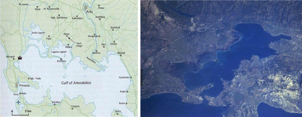A las cuatro de la tarde del 21 de septiembre de 1828, «bajo el más feroz fuego de Preveza y Aktio, para el éxtasis de los presentes» (S. Trikoupis), cruzaron el estrecho y entraron en el golfo de Amvrakikos o golfo de Arta. Arrollaron a 43 barcos y hundieron la cañonera turca, mientras que el dikatarto se salvó a duras penas y se dirigió a Salaora.