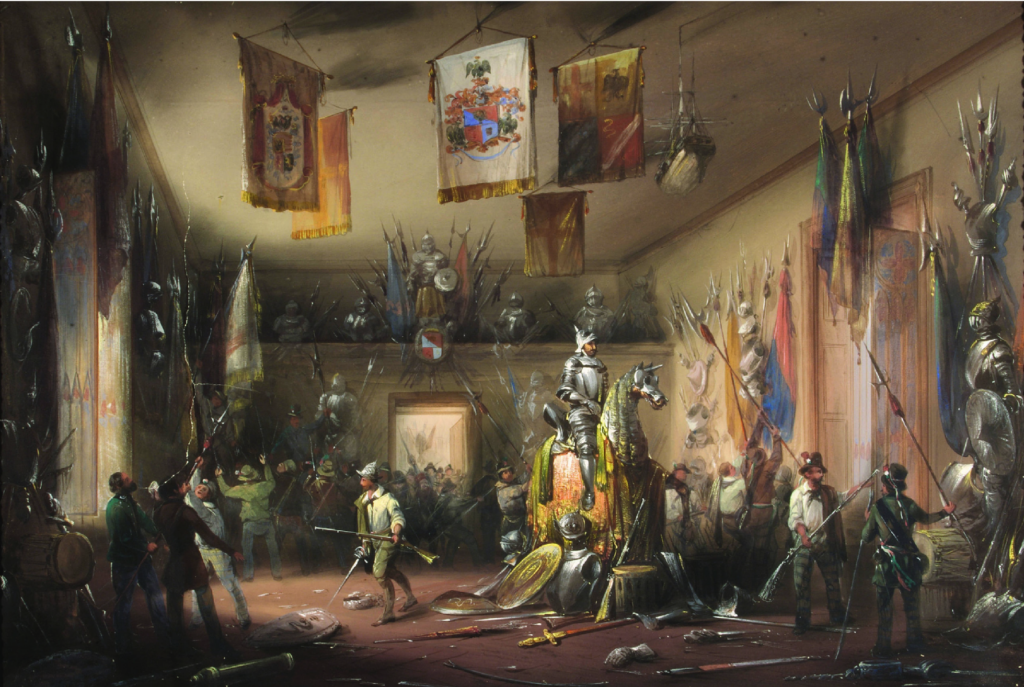 Armería del caballero Ambrogio Uboldo invadida por los insurgentes milaneses para abastecerse de armas el 19 de marzo de 1848. Autor Carlo Bossili.